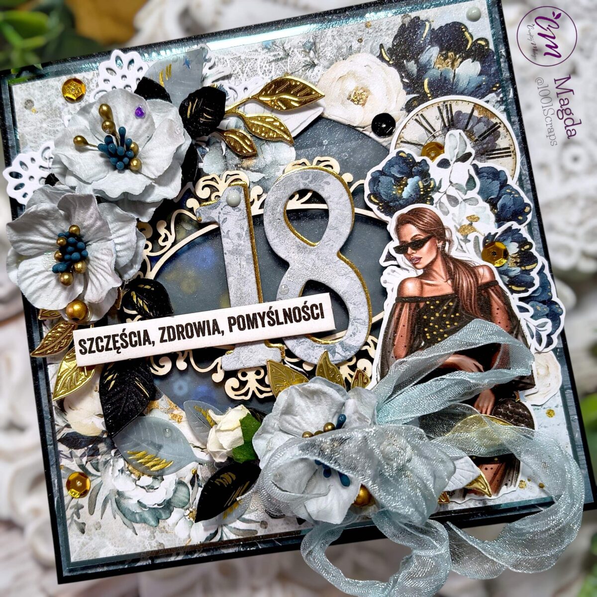 Kartka na 18 urodziny glamour – eleganczna, ręcznie wykonana propozycja