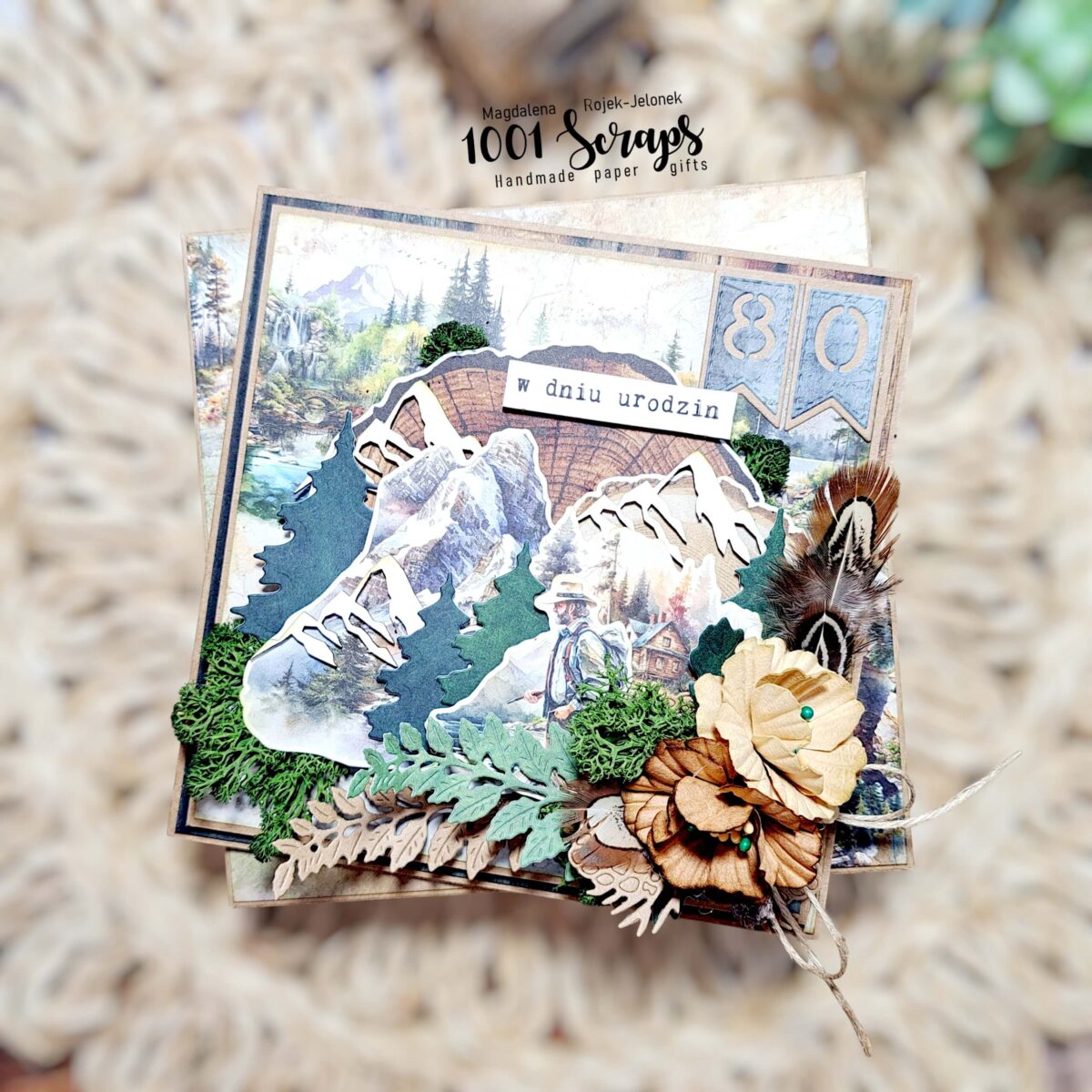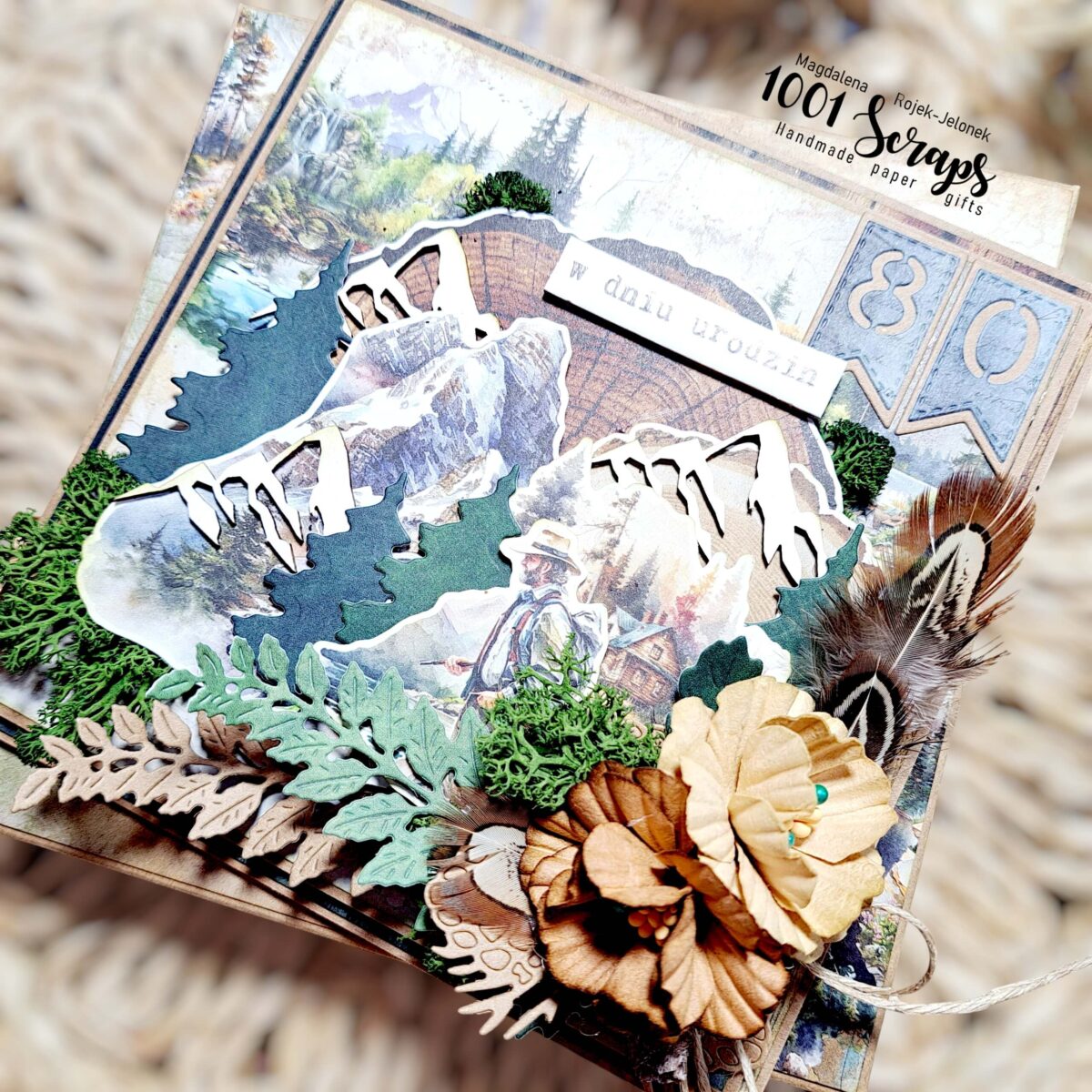 Bogate detale, staranne kompozycje i ręcznie wykonane elementy sprawiają, że kartka prezentuje się wyjątkowo elegancko. To kartka handmade, która może pełnić rolę nie tylko życzeń, ale także sentymentalnej pamiątki — szczególnie przy tak wyjątkowym jubileuszu jak 80. urodziny.