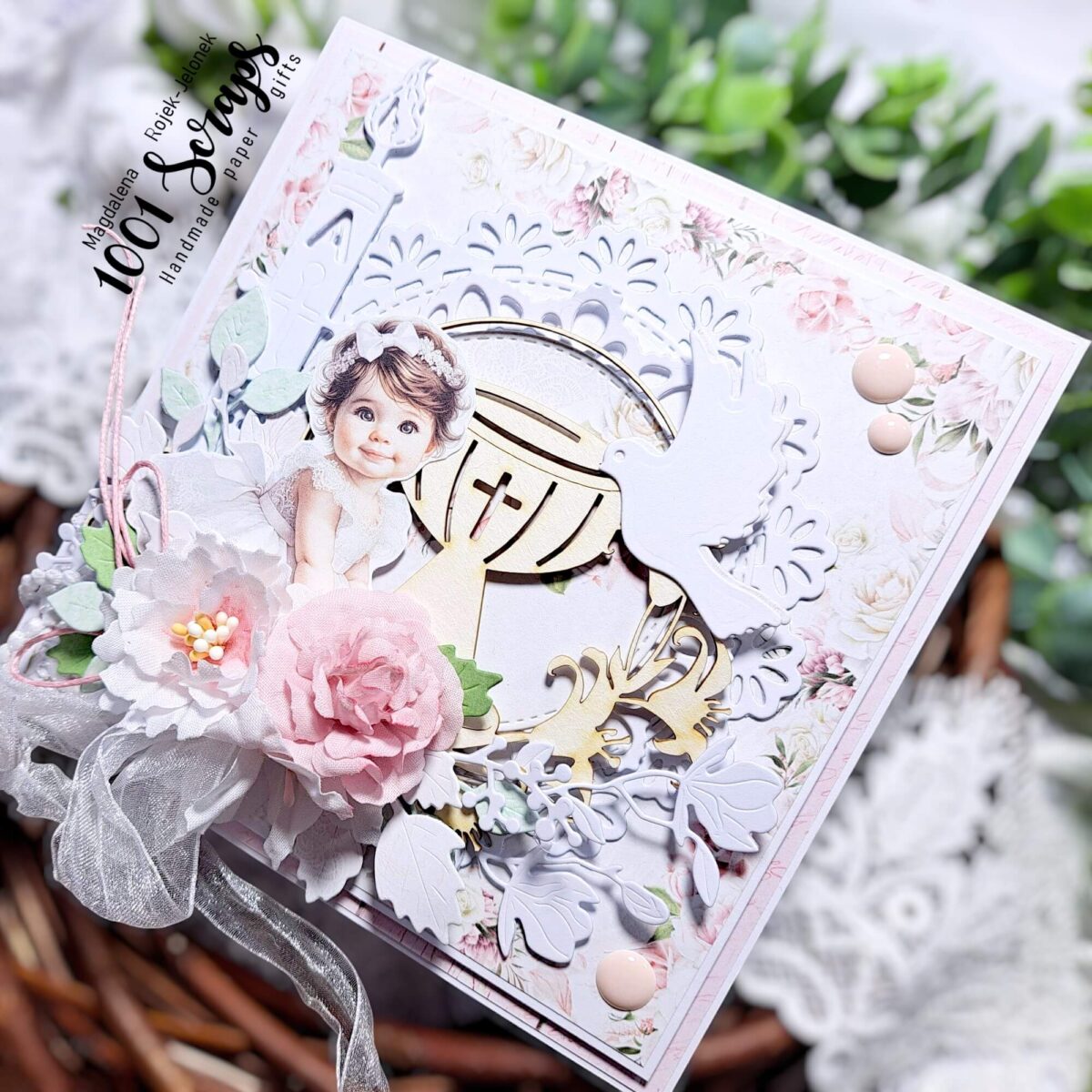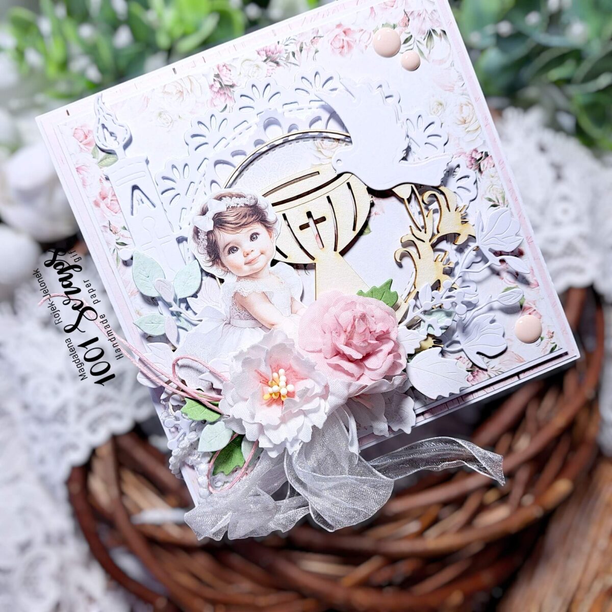 Kartka na chrzest dla dziewczynki – delikatny projekt handmade w technice scrapbooking